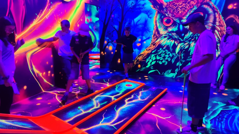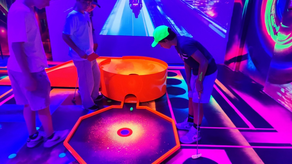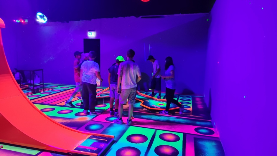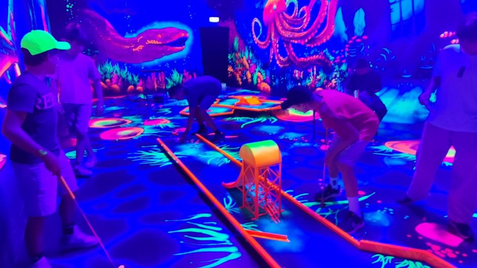 Am Sonntag um 15:00 Uhr begann die Reise nach Wien. Nachdem die Zimmer bezogen waren, ging es in die Black-Lite-Arena. Dort gab es für die Kinder ein Minigolf-Spiel der besonderen Art in grellen, bunten Farben.