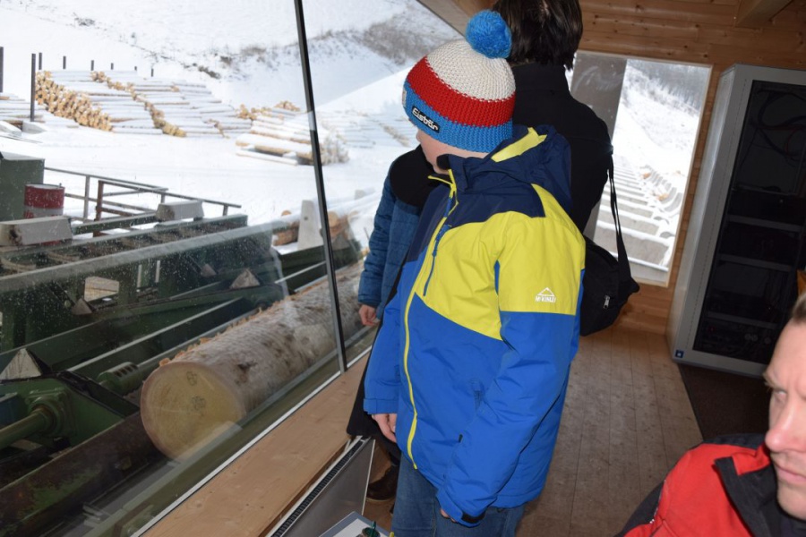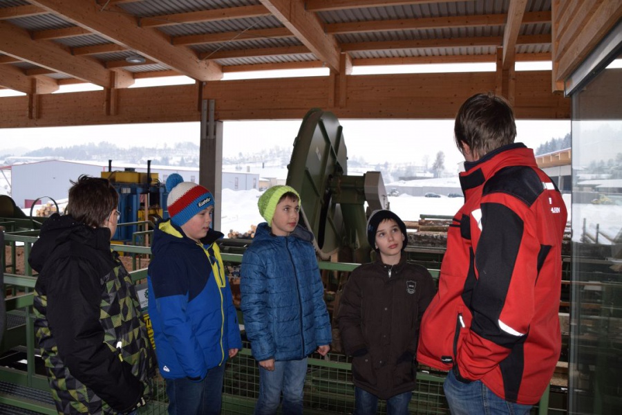 Im Rahmen eines Unterrichtsprojektes besuchten 4 Schüler aus der 2. Klasse der NMS Rappottenstein das Sägewerk Hahn in Grünbach. Georg Hahn führte den Knaben in beeindruckender Weise das vollautomatisierte Werk vor: Entrinden, Abschneiden, Sortieren, Markieren von mächtigen Holzstämmen - und das alles auf Knopfdruck. Er erzählte ihnen auch Interessantes aus der Firmengeschichte und informierte sie über die derzeitige Produktion und weitere Expansionspläne im Werk.