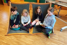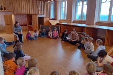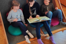 Die Schülerinnen und Schüler der zweiten Klasse luden dazu die Kinder der 1. Klasse Volksschule ein. Jede/r bereitete ein Buch vor und las es den gespannten Volksschulkindern vor. Zum Abschluss durften die Kinder noch der spannenden Geschichte des Grolltrolls lauschen, welche Fr. Binder vortrug.