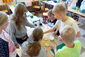 Im Rahmen des Biologieunterrichts stellte die 2. Klasse selbst Joghurt her. Dazu gaben die Schüler und Schülerinnen Joghurt in Milch. Nun machten die Milchsäurebakterie...